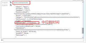 现在是 21:02,我们可以通过 getblockchaininfo 命令查看当前的共识时间(共识时间是链上最近11个区块的中位数)。