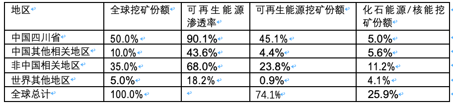 结合全球比特币挖矿地点和相应地区的可再生能源渗透率,估算出目前比特币挖矿能源组合中可再生能源的渗透率占到74%,是全球平均水平的四倍多。